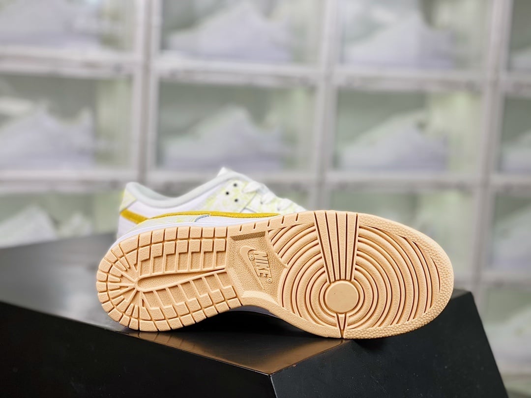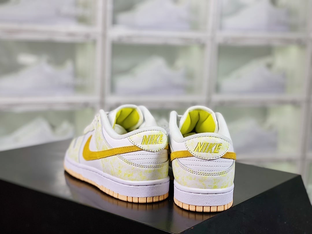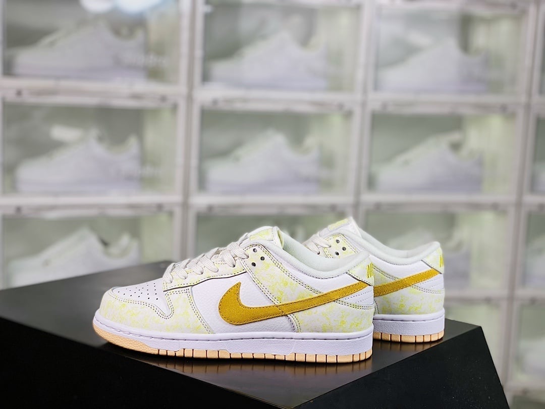 O NK Dunk Low Couro Branco Tie-Dye Verde e Amarelo apresenta couro premium com efeito tie-dye em tons de verde e amarelo, oferecendo conforto clássico e estilo urbano moderno.