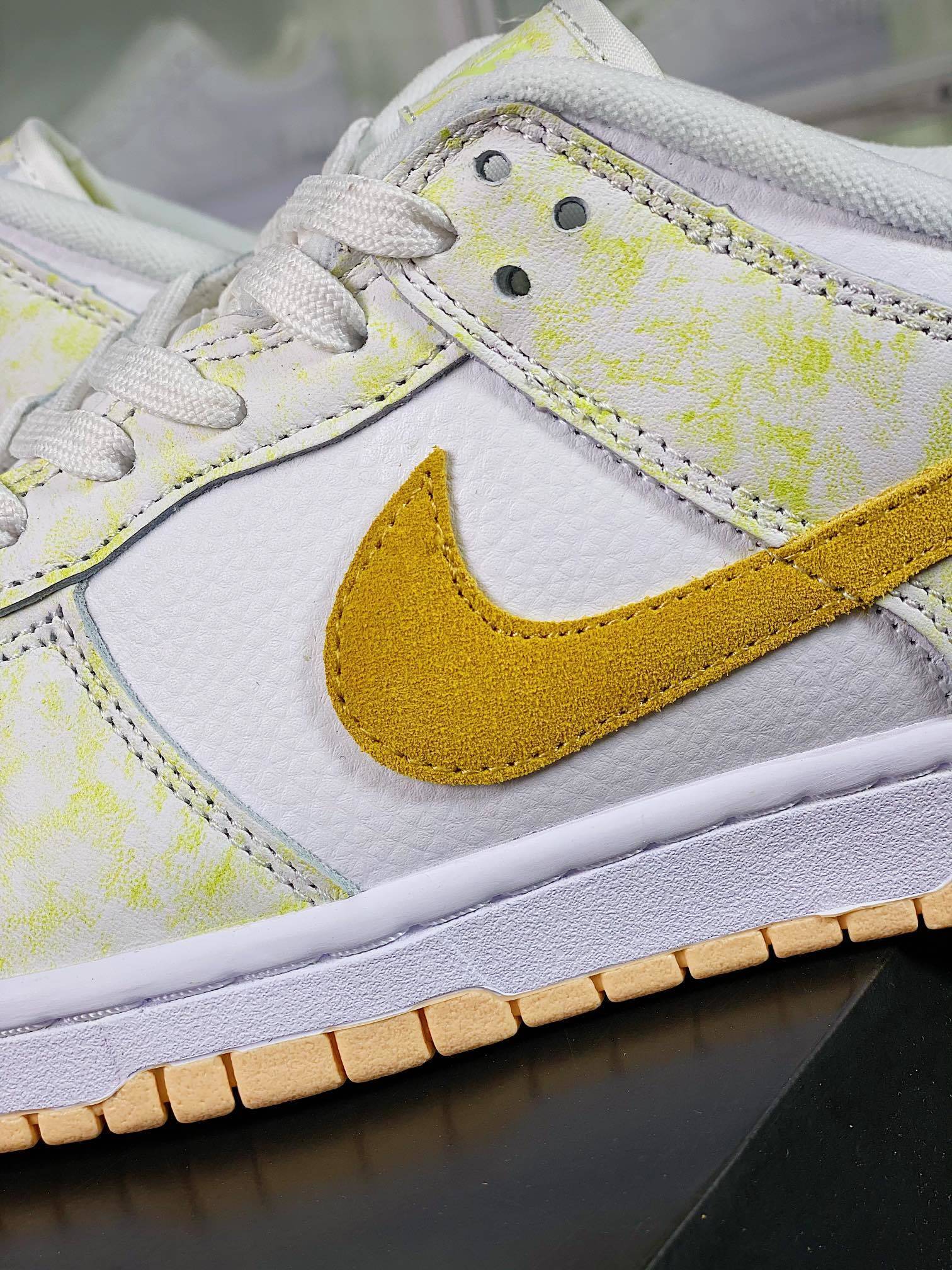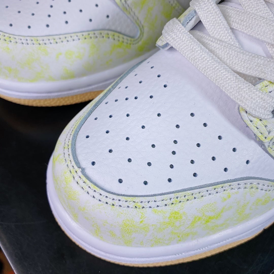 NK Dunk Low Couro Branco Tie-Dye Verde e Amarelo