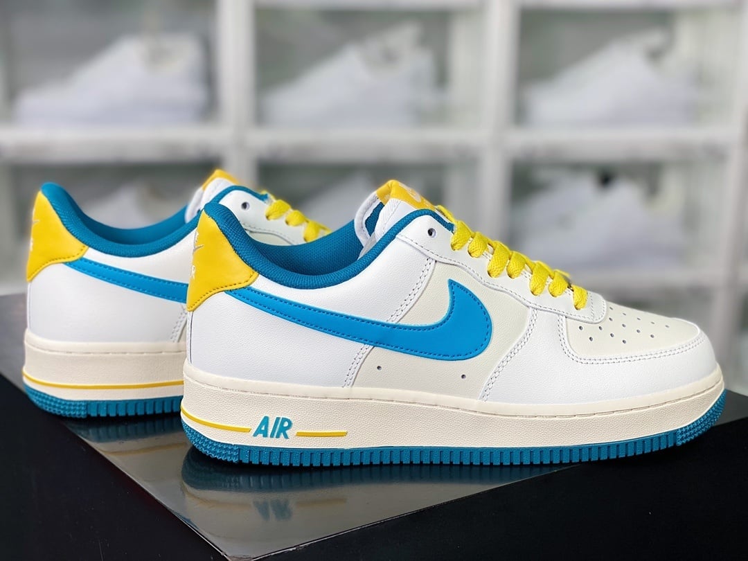 Nike Air Force 1 Branco/Amarelo com Swoosh Azul