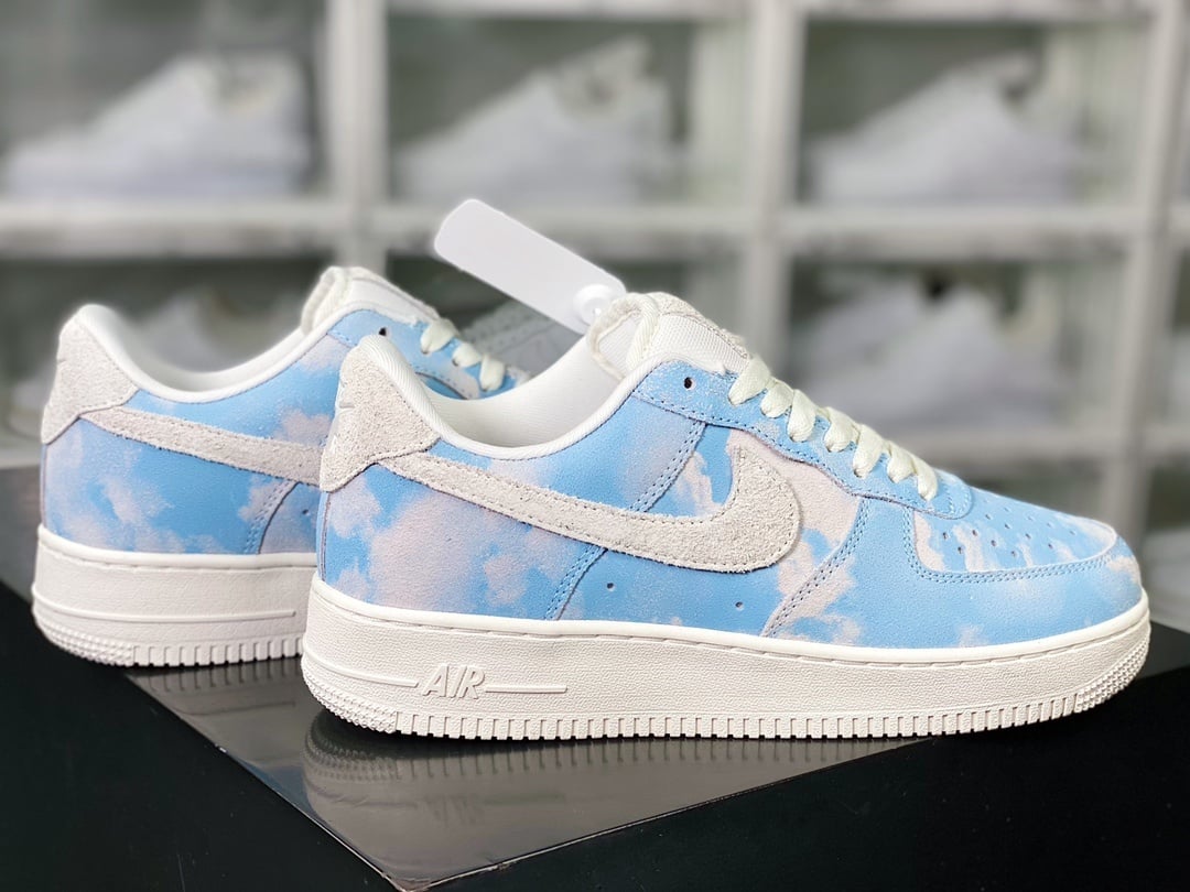 Os Nike Air Force 1 apresentam um design em camurça premium com efeito tie-dye em tons de azul claro e branco, lembrando o céu e as nuvens. Um modelo moderno e artístico que combina estilo urbano com conforto lendário.