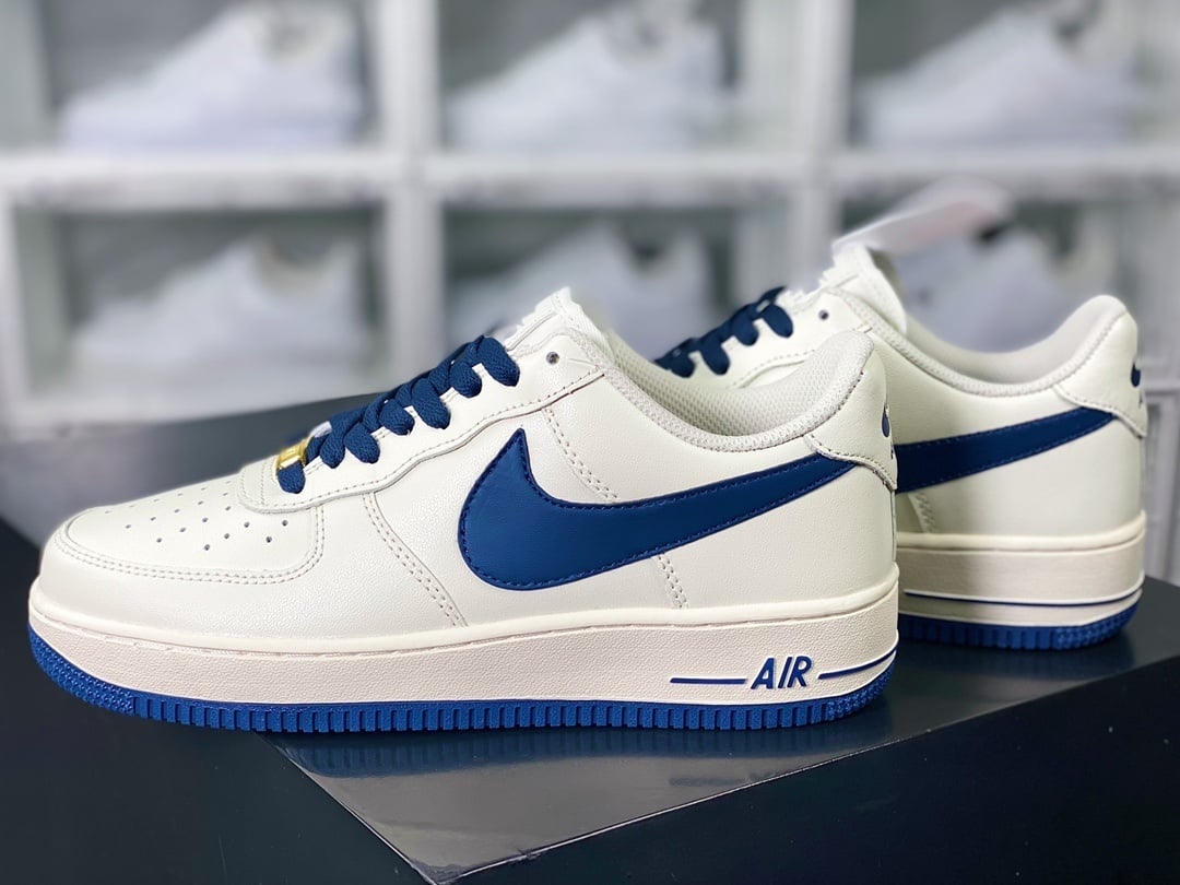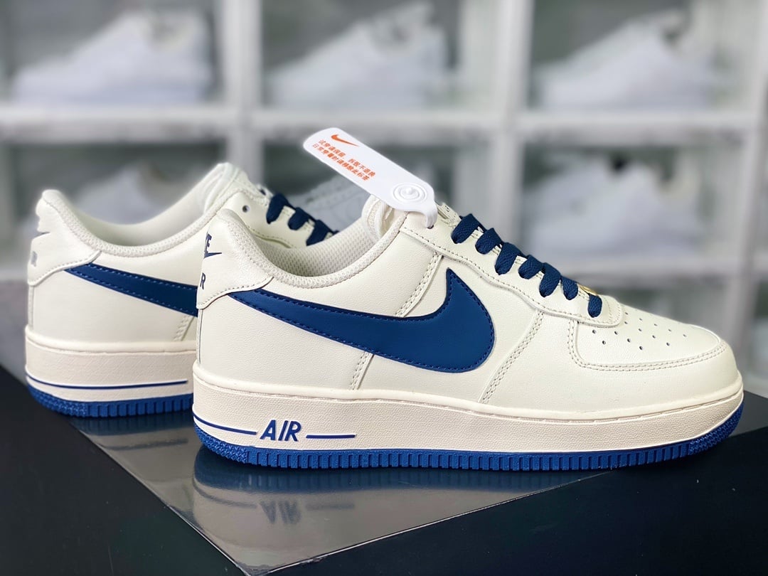 Os Nike Leather Creme e Azul Marinho Hook apresentam couro premium creme com detalhes em azul marinho e logo ampliado tipo Hook, combinando estilo urbano com conforto clássico.